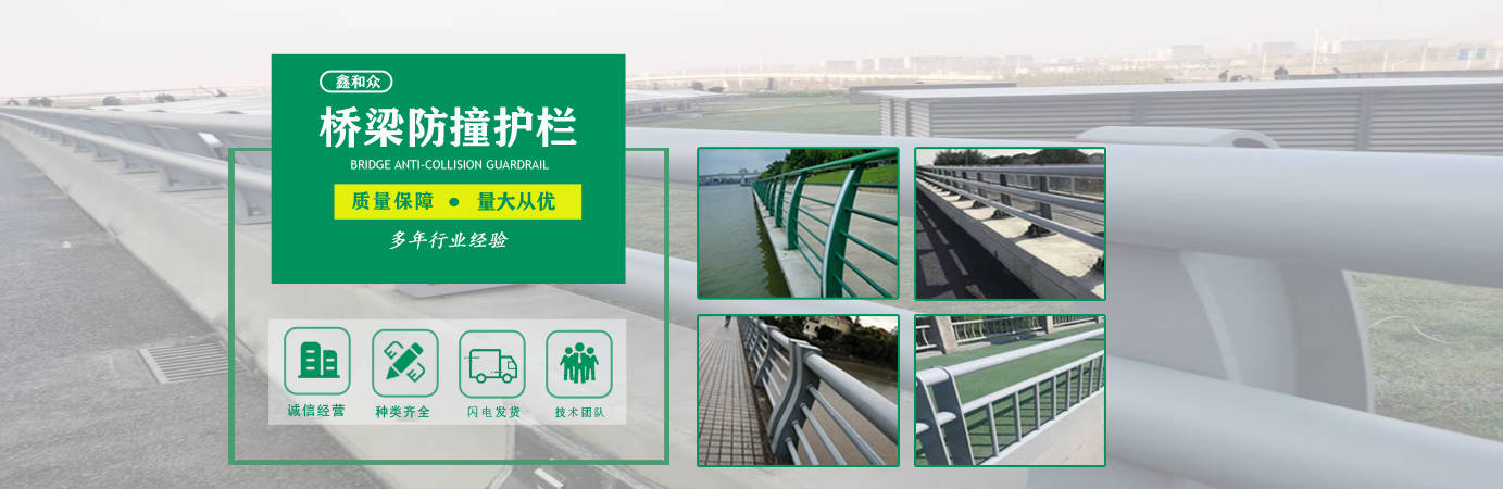 山東鑫和眾金屬制品有限公司主要產品有防撞護欄,橋梁護欄,道路護欄,河道護欄,不銹鋼護欄等護欄。提供設計方案,一站式定制,包您滿意價格優惠,歡迎來電咨詢!    公司常年從事銷售護欄防撞護欄,橋梁護欄,道路護欄,河道護欄,不銹鋼護欄,橋梁鋼護欄,河道燈光護欄等。產品廣泛應用于橋梁、河道、旅游景區、道路、公路、公園、小區、景觀、道路防撞等領域。    公司產品均采用優質不銹鋼材料,符合相關標準。各種型號不銹鋼復合管及護欄,質量嚴格把控。產品強度高、耐腐蝕、焊接牢固、抗沖擊、性能好,防撞護欄結構簡單、美觀實用大方?!    g迎前來訂購!...